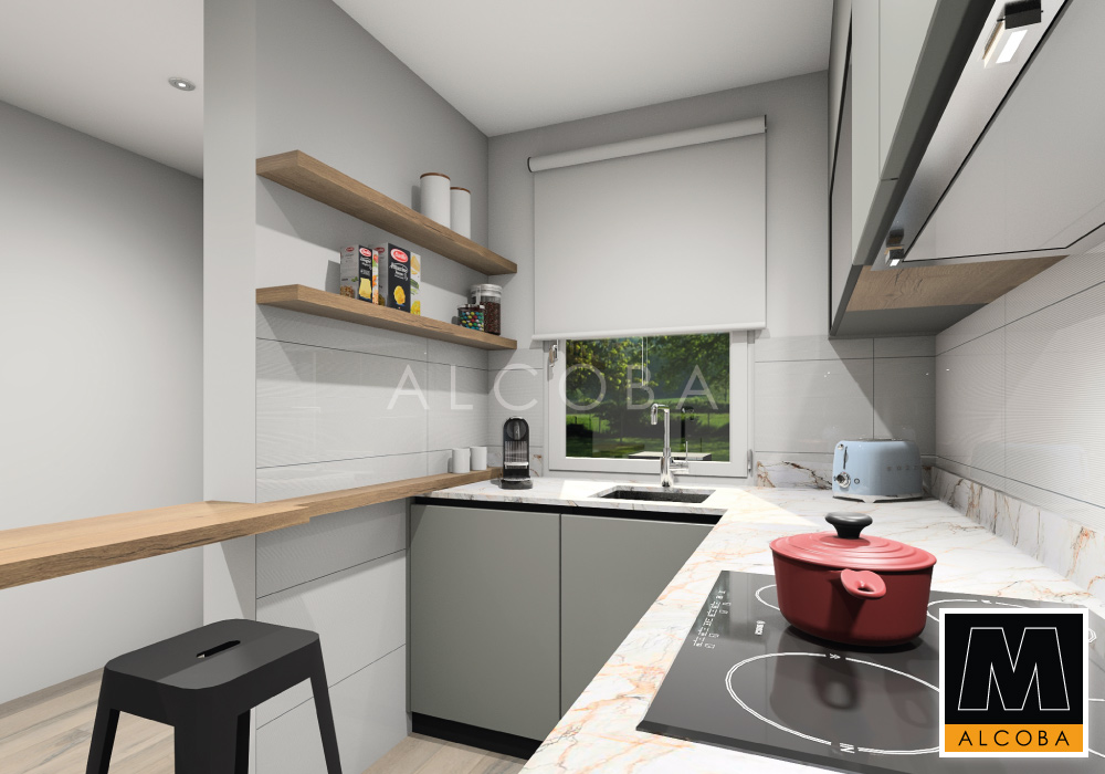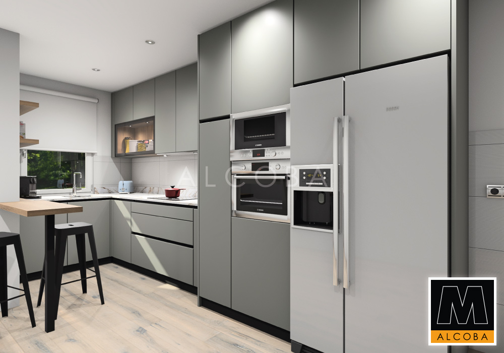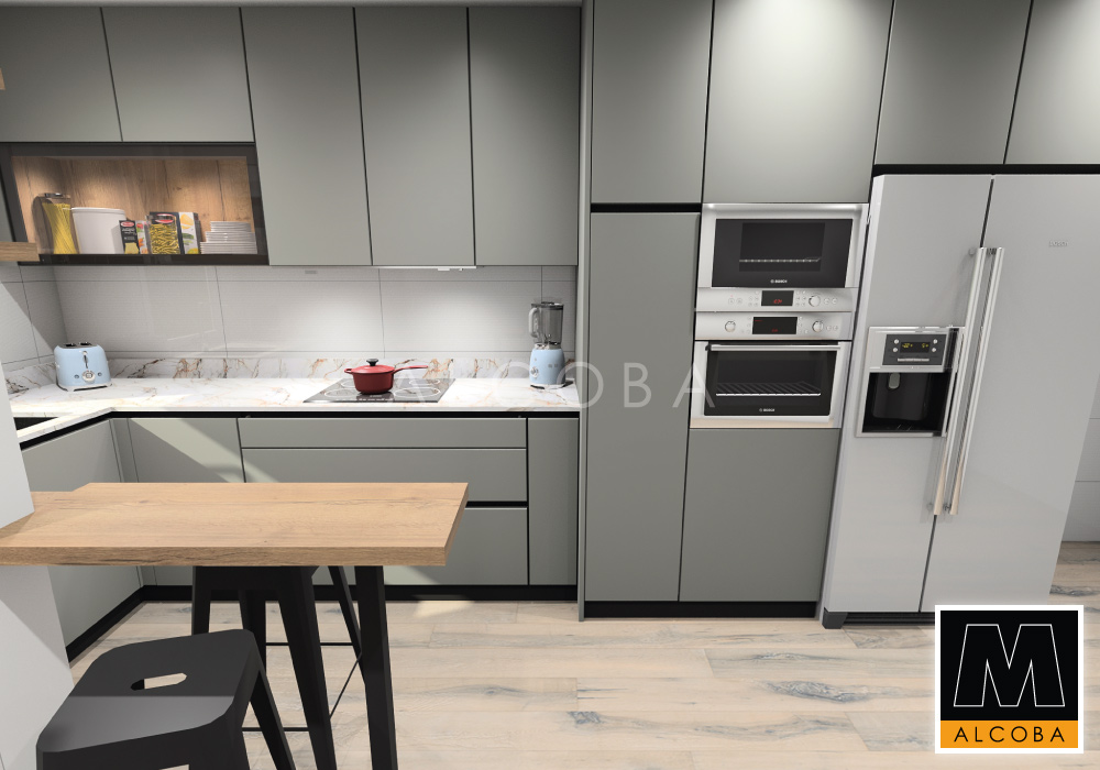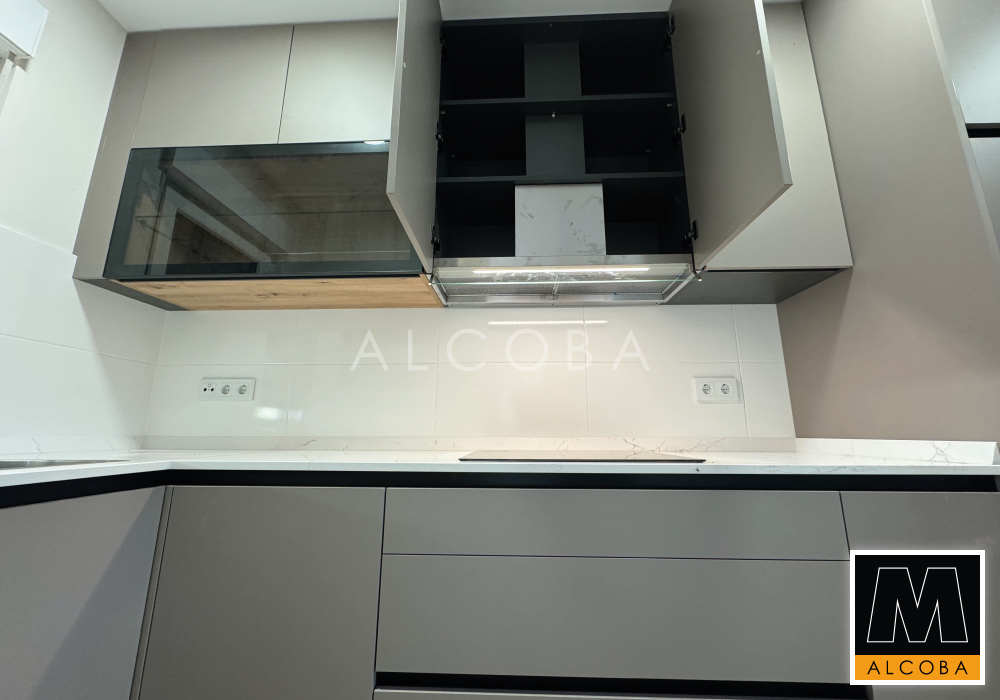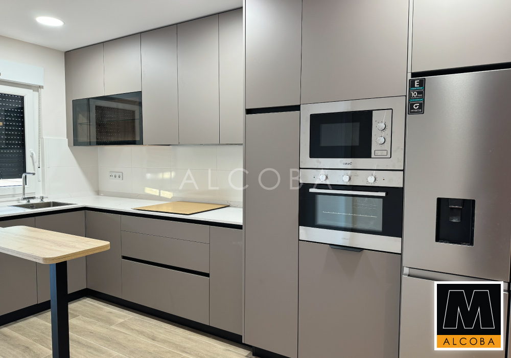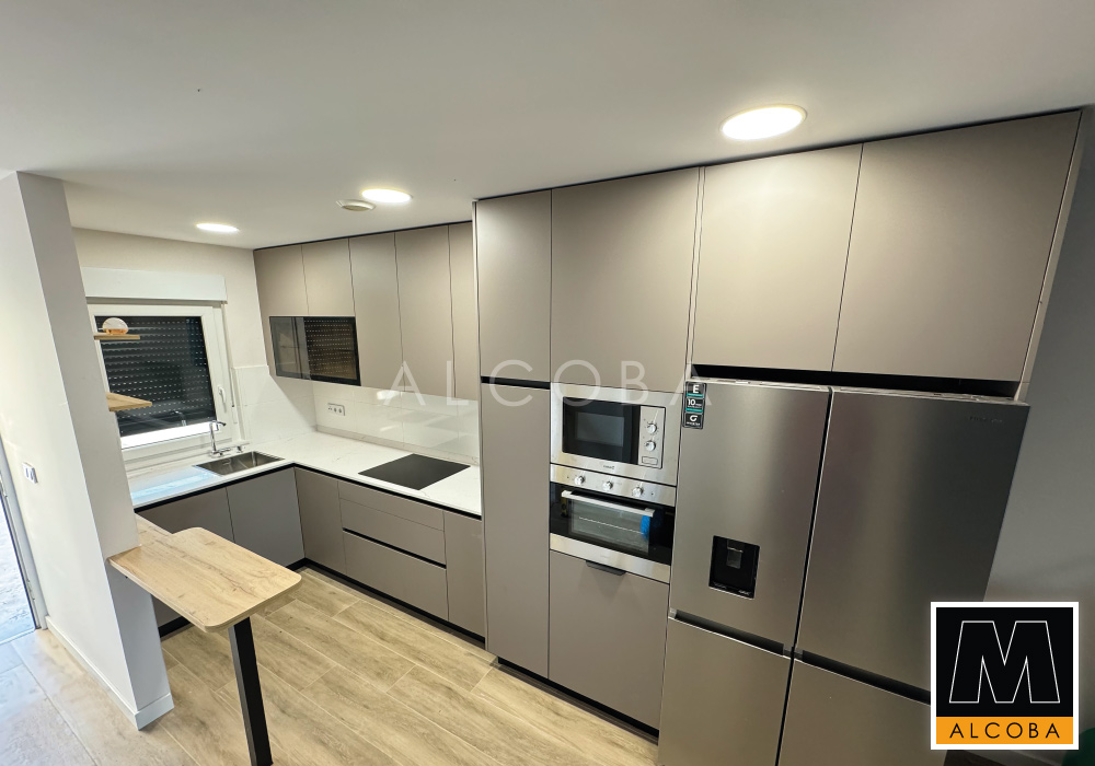 Cocina instalada en una vivienda unifamiliar de nueva construcción. Se muestra el diseño y el resultado final.